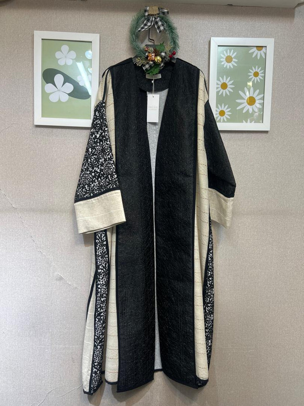 جنس ترکیب لینن خارجی شسته شده بدون آبرفت و گیپور فرانسوی مشکی با آستر سفید